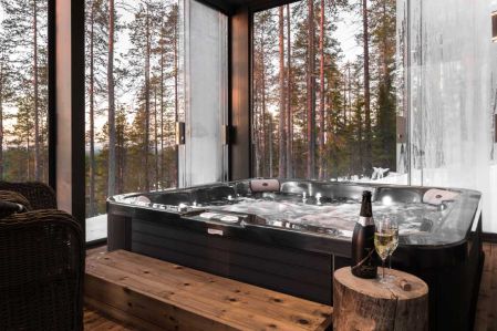 Salmilamminvaaran huipulla, Rukalla sijaitseva näköalahuvila sulautuu upean tunturiluonnon syleilyyn. Henkeäsalpaavan hulppeat maisemat avautuvat länteen kymmenien kilometrien päähän ja kirkkaalla säällä voit ihailla jopa Riisitunturin siluettia tai Kitkajärven maisemia omalta sohvaltasi.